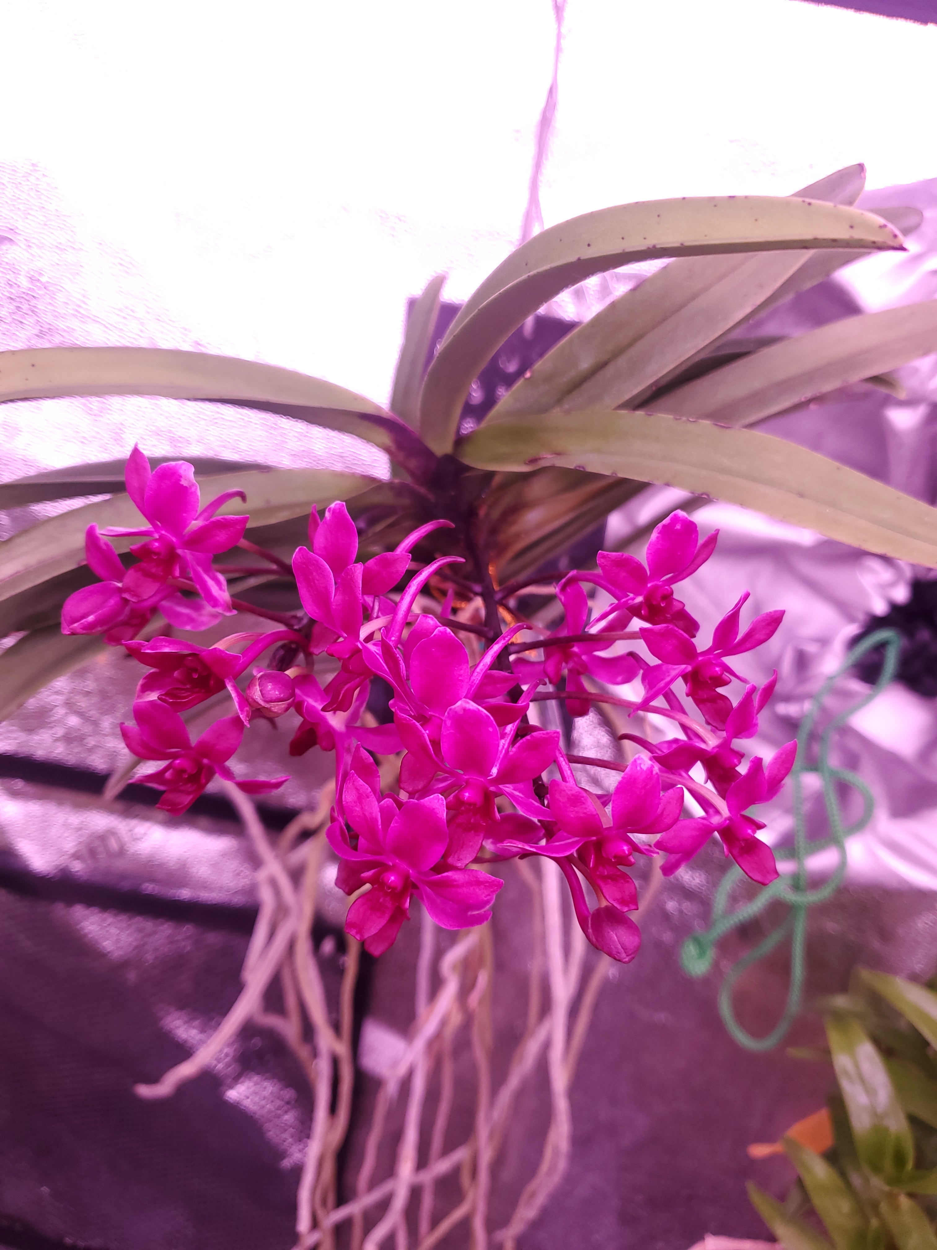 LightVanda are light loving plants, most will appreciate bright light with little shade. Avoid direct sunlight during midday. Some types of Vanda, such as strap-leafed varieties, will prefer partial shade. Leaf color is a good indication of adequate light - bright green, almost chartreuse colored leaves are ideal, sometimes purple/red coloring on the leaves or leaf edges may appear in sufficient lighting.