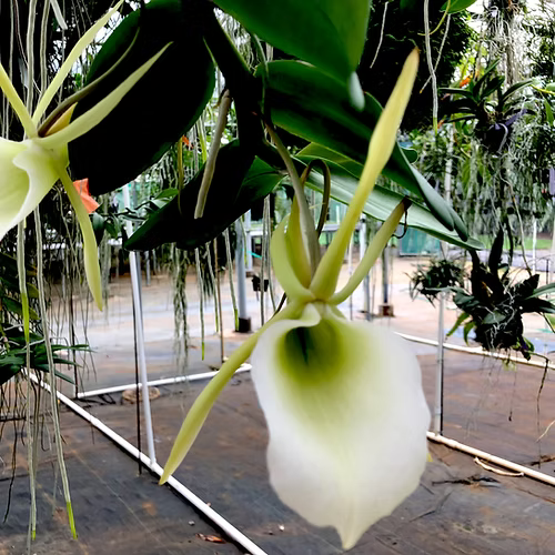 This species hails from Africa and is a vining Angraecum. It can produce flowers more than once a year. As with most Angraecum, it will be fragrant at night, with flowers that are very large with a green lip.