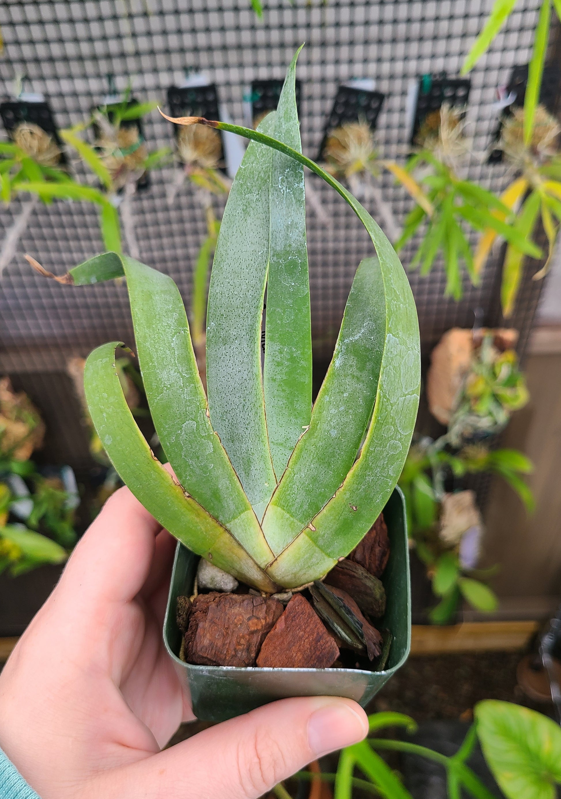 A very unique species native to Latin America and South America. The plant's foliage closely resembles a succulent with flat, pointed leaves.