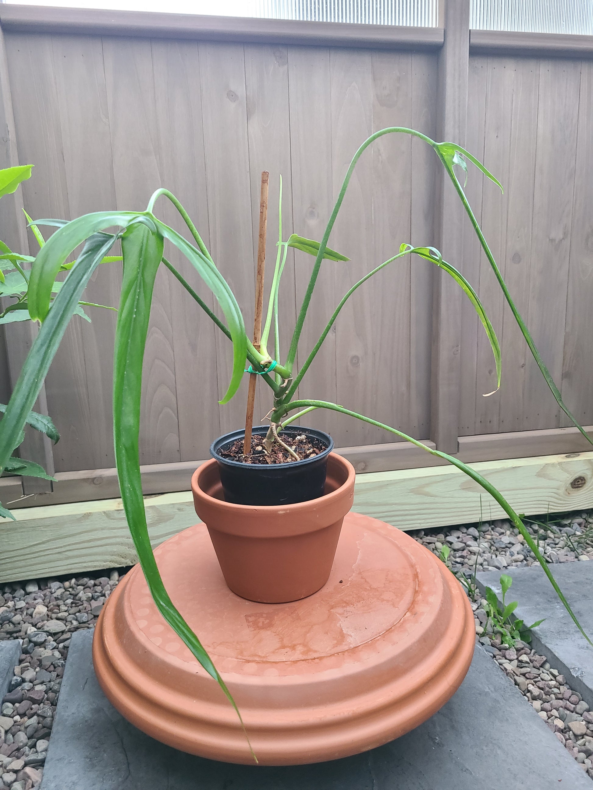 This is a rare aroid to find in collections, it's ideal for collectors and tropical displays. It features long, slender leaves and likes to climb.