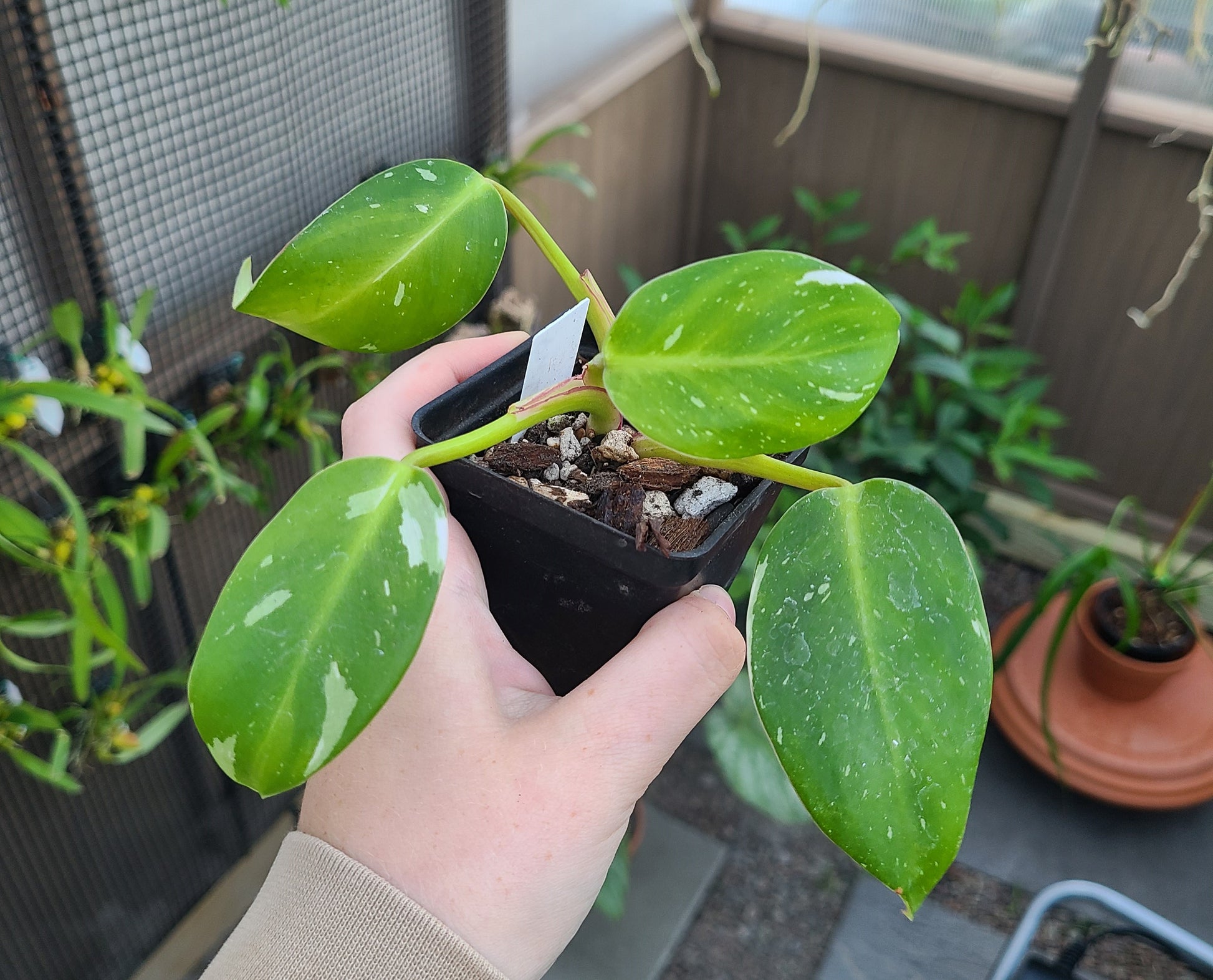 This plant has distinct variegation that contrasts beautifully against the typical dark-green foliage. It grows slowly, but if allowed to climb, it can reach up to 10ft at maturity.