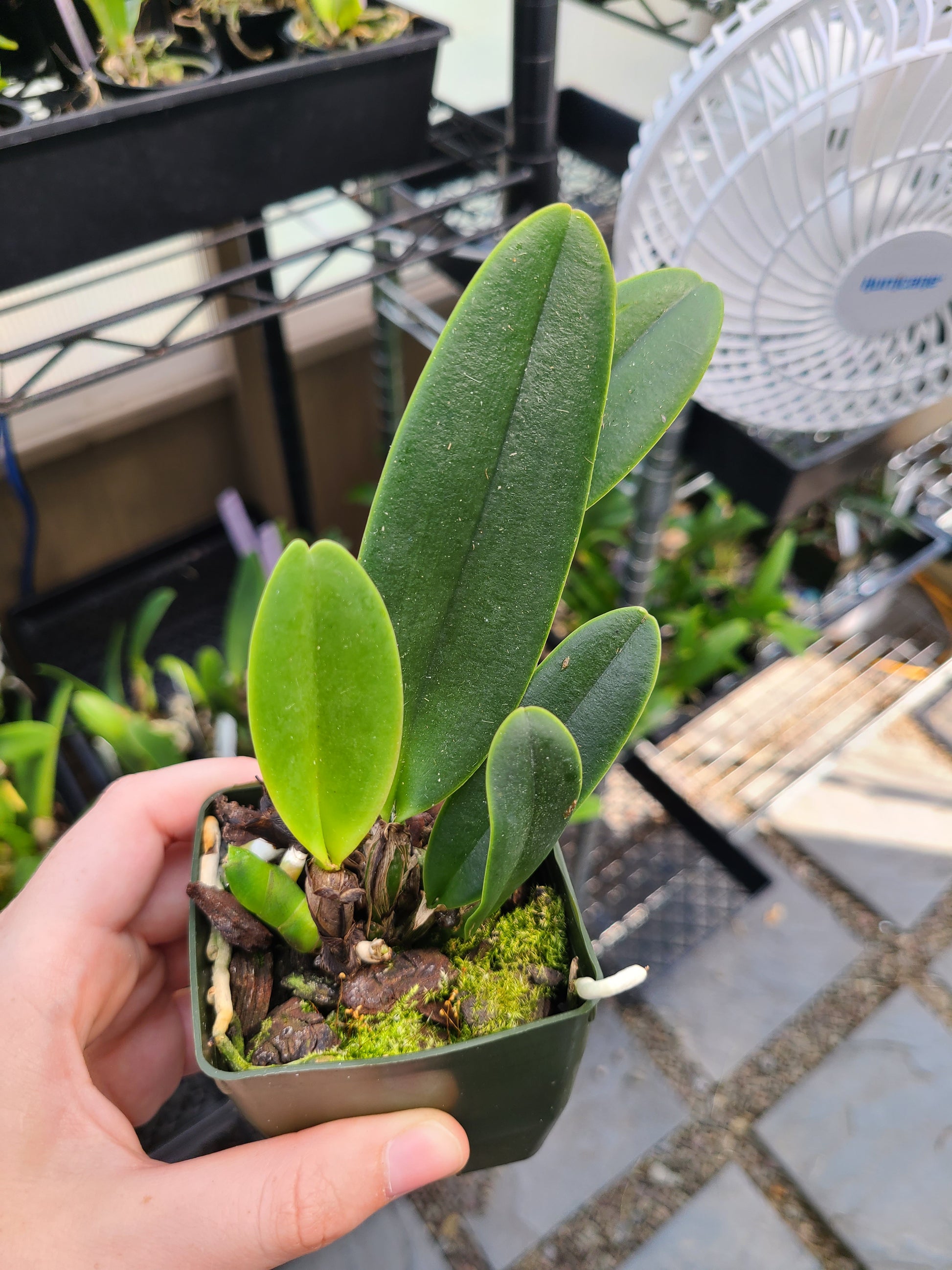 A new, stunning, white cattleya that is near blooming size (1-2 years to bloom). Established in 2.75" pots.